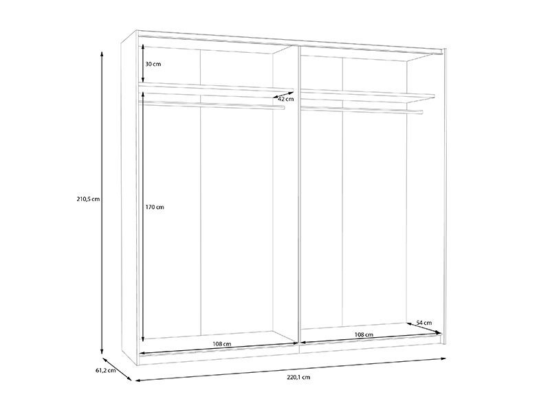 Dimenzije: Širina 220,0 cm x Dubina 61,0 cm x Visina 210,5 cm
