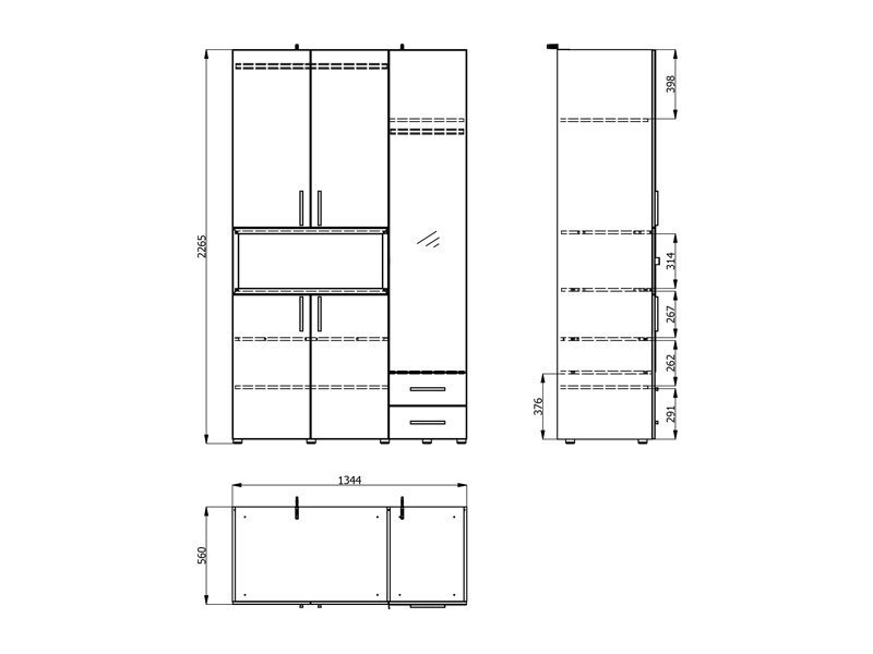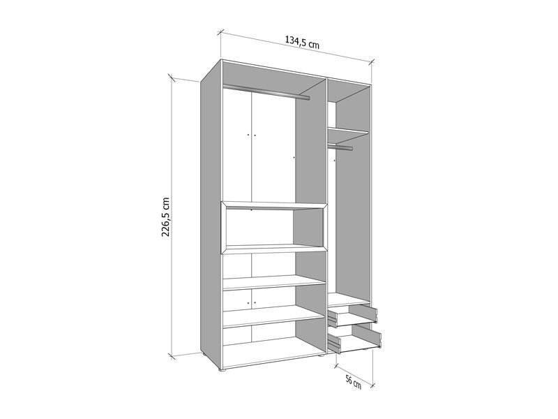 Dimenzije: Širina 134,5 cm x Dubina 56,0 cm x Visina 226,5 cm