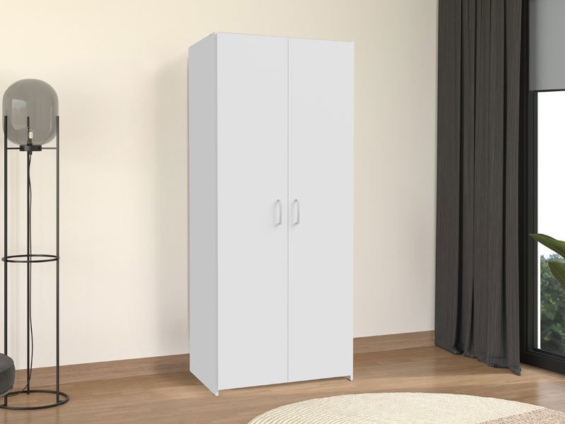 Tačan naziv dezena: korpus iverica bela, front iverica bela. Ormar ECON 2K h190 karakteriše dizajn čistih linija i bogate teksture kao i praktičan upotrebni prostor koji omogućava garderobna šipka. *Napomena: Cena je bez dodatne opreme. Preporučujemo Set polica za garderobere ECON h190 (2K/2K1F)