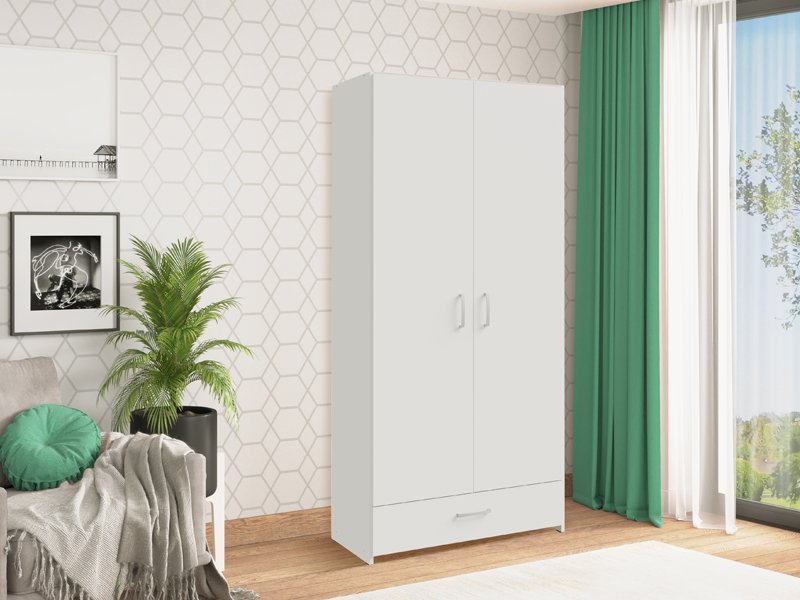Tačan naziv dezena: korpus iverica bela, front iverica bela. Ormar ECON 2K1F h190 doprineće da vaš dom bude opremljen po najnovijim enterijerskim standardima. Sastoji se iz dva zatvorena segmenta, čiju funkcionalnost omogućava garderobna šipka i noseća polica, kao i prostrana fioka. Zbog svoje funkcionalnosti, ali i izražene estetike, idealno će se uklopiti u vašu spavaću sobu. *Napomena: Cena je bez dodatne opreme. Preporučujemo Set polica za garderobere ECON h190 (2K/2K1F)
