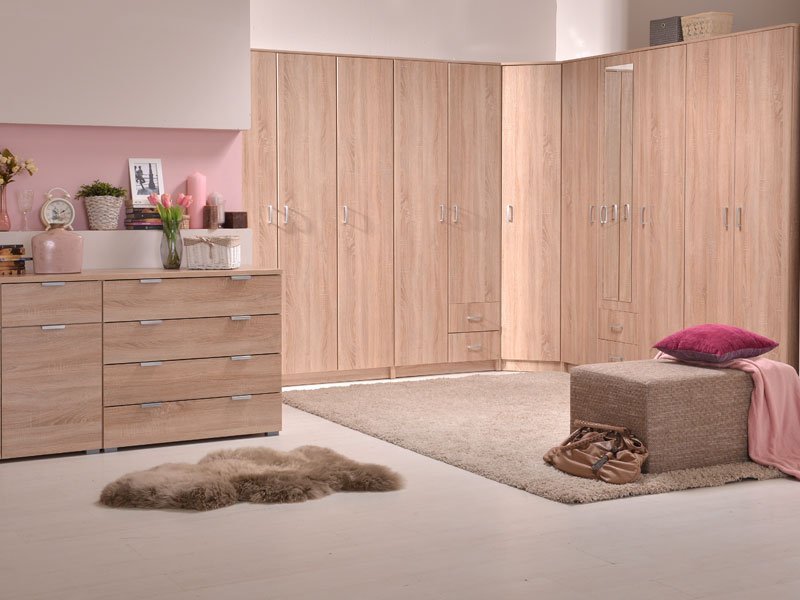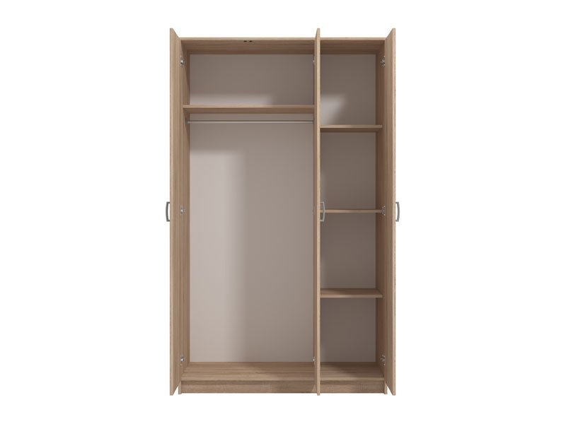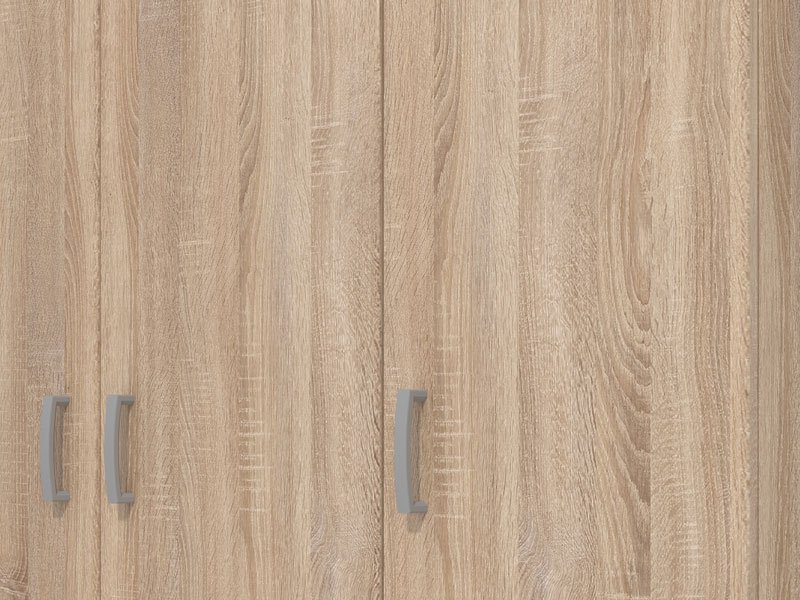 Model trokrilnog ormara HANA 3K, u sonoma hrast dezenu, sa garderobnom šipkom i četiri police namenjen je za odlaganje odeće i posteljine. Ormar HANA 3K zadovoljiće potrebe čitave porodice.