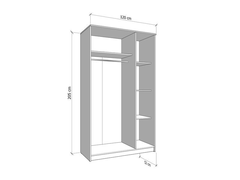Dimenzije: Širina 120,0 cm x Dubina 52,0 cm x Visina 205,0 cm