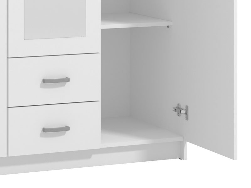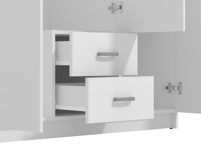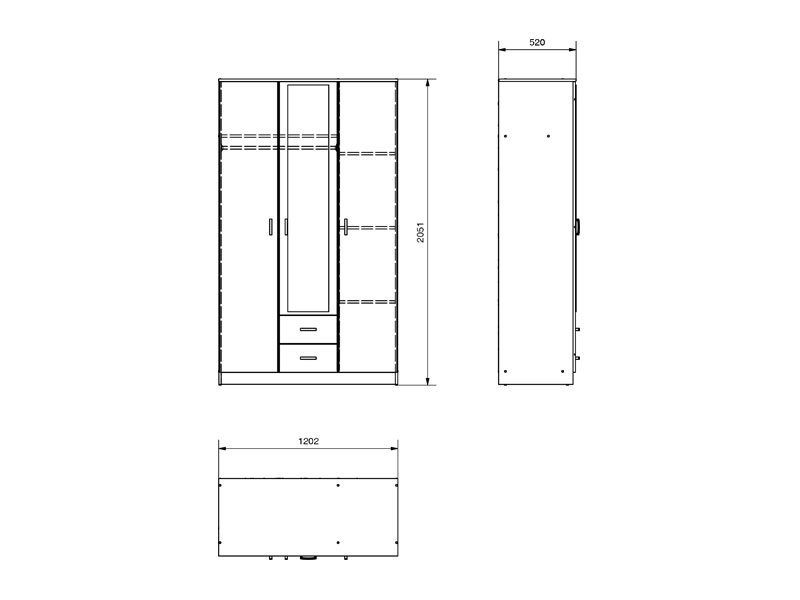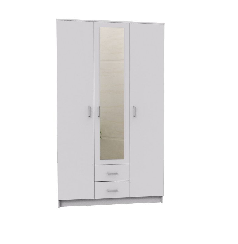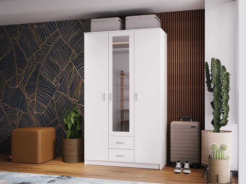 Elegantni trokrilni model ormara HANA 3K2FO, u opak belom dezenu, sa garderobnom šipkom, tri police i dve fioke, funkcionalno će doprineti organizaciji ambijenta. Ogledalo na središnjem delu ormara HANA 3K2FO estetski će oplemeniti životni prostor.