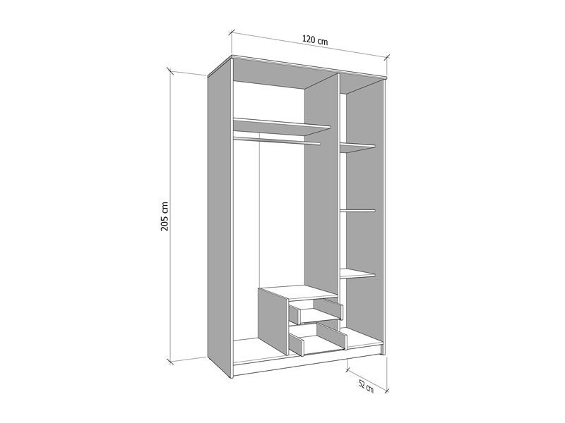 Dimenzije: Širina 120,0 cm x Dubina 52,0 cm x Visina 205,0 cm