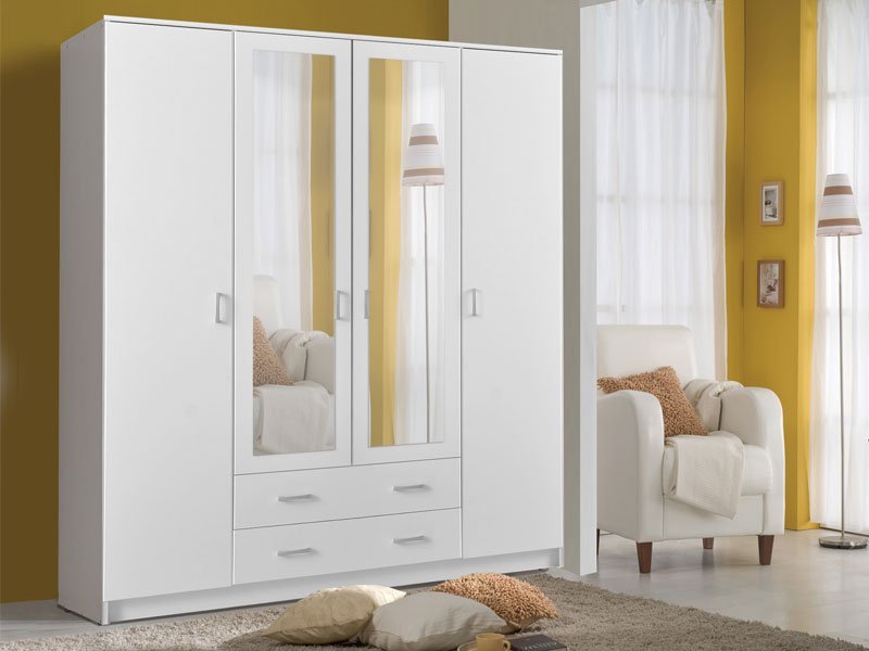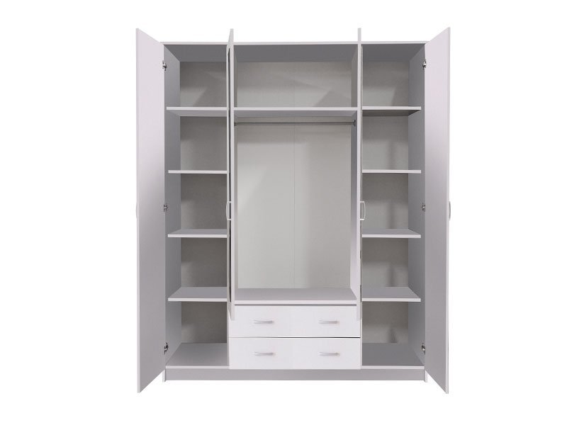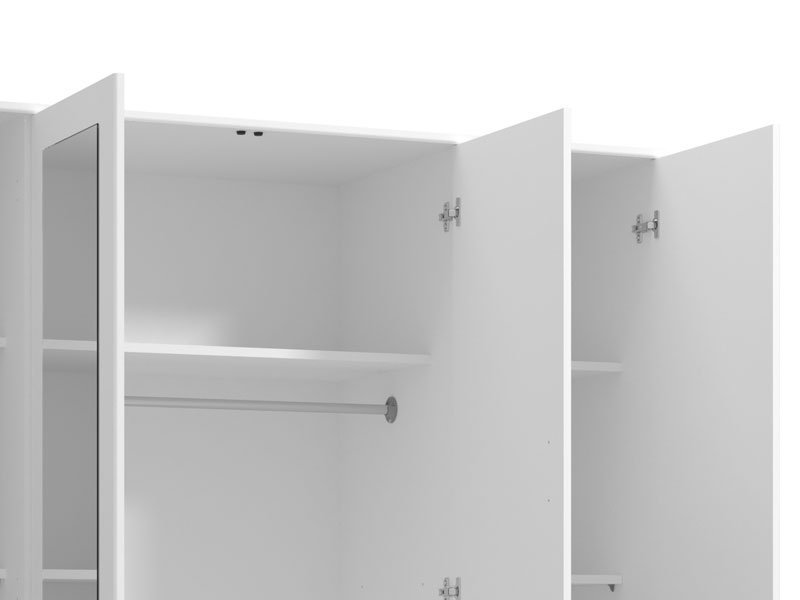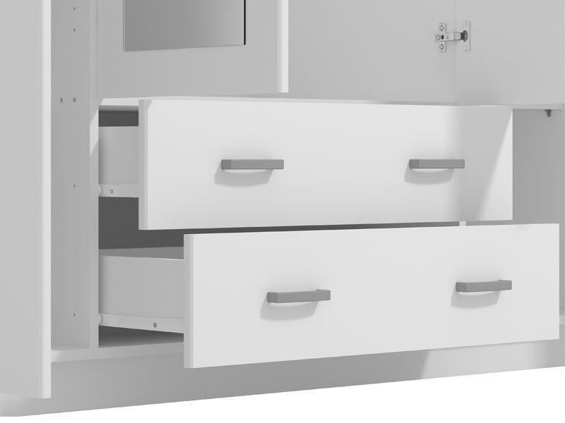 Elegantni model ormara HANA 4K2F2O, u opak belom dezenu, sa garderobnom šipkom u središnjem delu, četiri police i dve fioke, funkcionalno će doprineti organizaciji ambijenta. Ogledala na središnjem delu ormara HANA 4K2F2O estetski će oplemeniti životni prostor.
