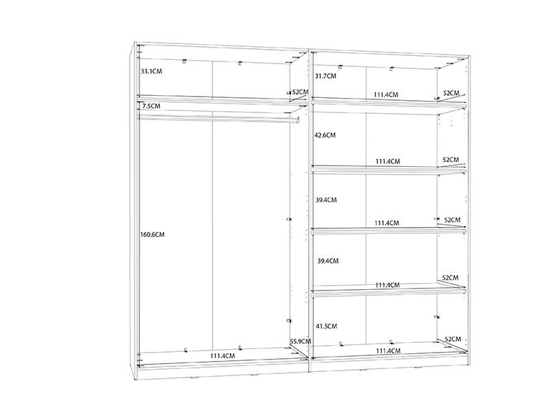 Dimenzije: Širina 227,5 cm x Dubina 59,0 cm x Visina 213,0 cm