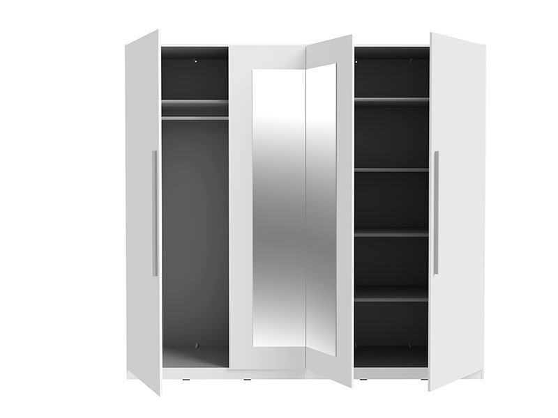 Tačan naziv dezena: korpus / front iverica bela, front iverica bela ogledalo. Ormar HELEN 4V2O je praktični model četvorokrilnog ormara sa dva ogledala u središnjem delu. Upotrebni prostor je funkcionalno raspoređen i podržava savremeni način života.