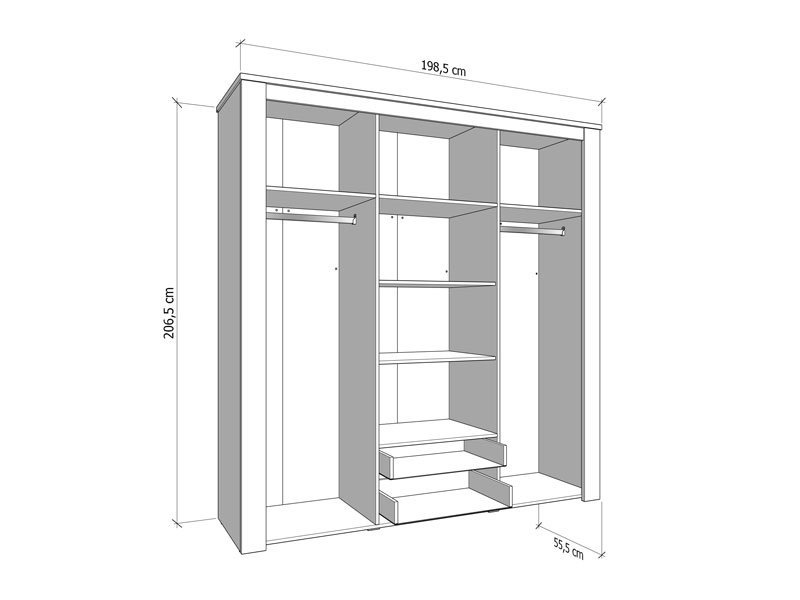 Dimenzije: Širina 198,5 cm x Dubina 55,5 cm x Visina 206,5 cm