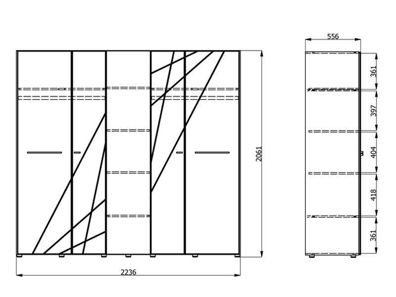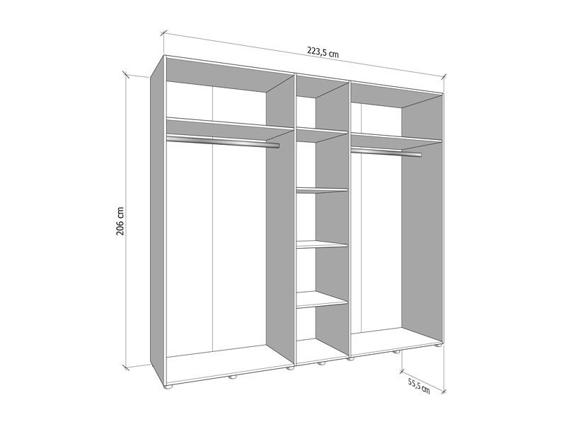 Dimenzije: Širina 223,5 cm x Dubina 55,5 cm x Visina 206,0 cm