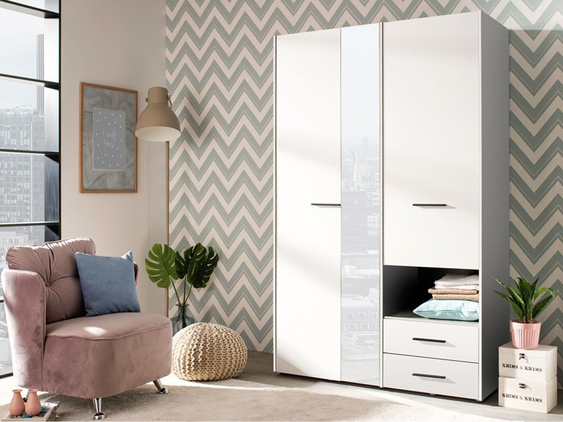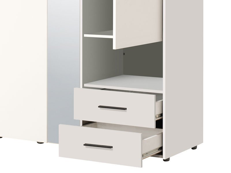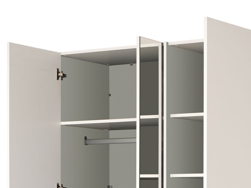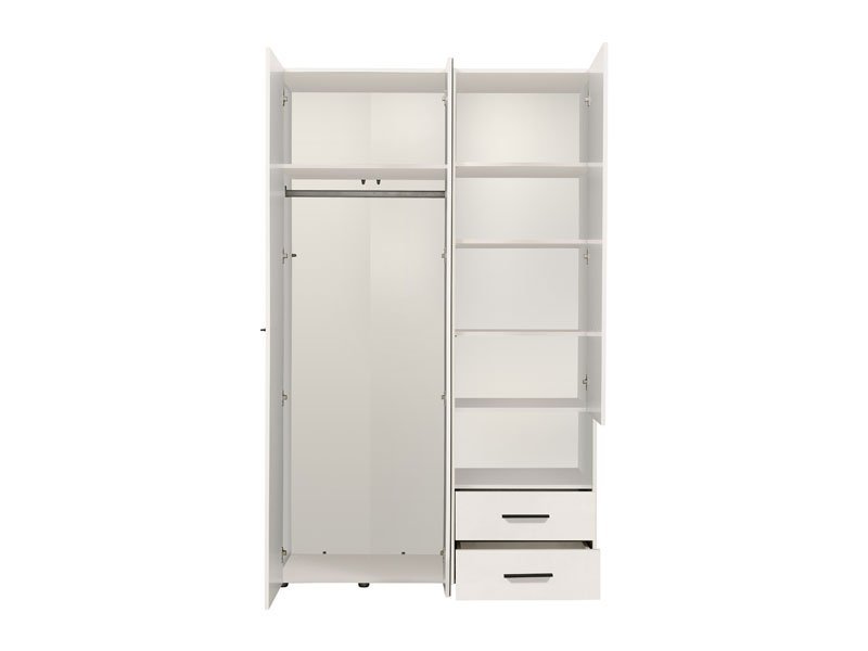 Ormar LEON 3K2FO, u opak belom dekoru, sa garderobnom šipkom sa leve, policama i dve fioke sa desne strane, funkcionalno će doprineti organizaciji ambijenta. Ogledalo na središnjem delu ormara LEON 3K2FO estetski će oplemeniti i vizuelno povećati ambijent životnog prostora u kome se nalazi.