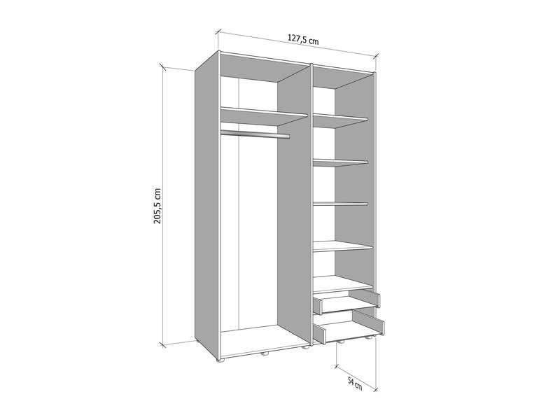 Dimenzije: Širina 127,5 cm x Dubina 54,0 cm x Visina 205,5 cm