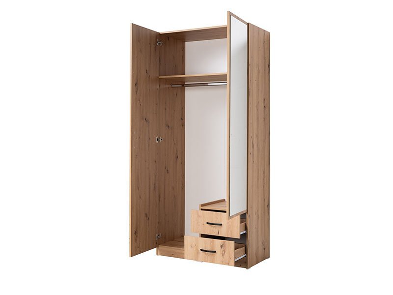 Tačan naziv dezena:korpus / front iverica artisan. Omar NATURIS 2V2FO poseduje odlično raspoređen upotrebni prostor koji čine garderobna šipka sa policom iznad nje, kao i dve prostrane funkcionalne fioke. Dodatni estetski benefit je ogledalo. Zahvaljujući svojim karakteristikama, ormar NATURIS 2V2FO ostavlja mogućnost kombinovanja sa raznim stilovima i koloritnim rešenjima, ukoliko je prostoru potrebno unošenje dinamike.