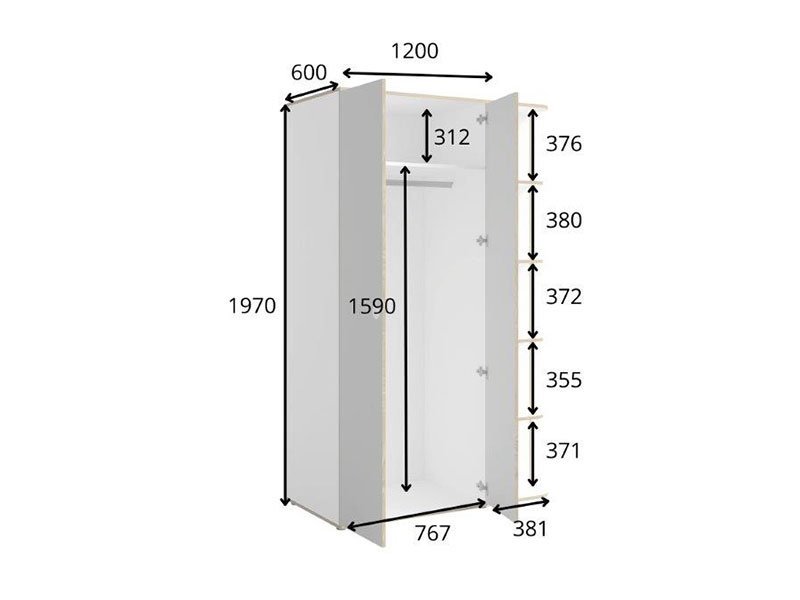 Dimenzije: Širina 196,5 cm x Dubina 60,0 cm x Visina 160,0 cm