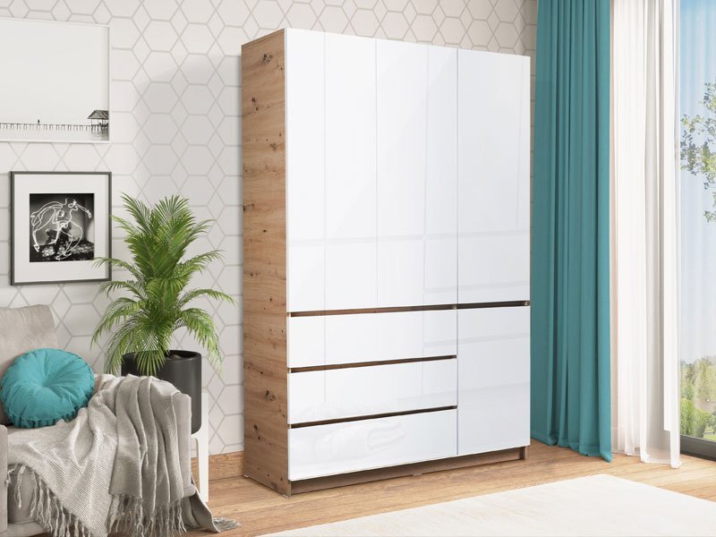 Tačan naziv dezena: korpus iverica artisan, front iverica bela sjaj. Praktični model ormara SEA 4V3F sa garderobnom šipkom, policama i tri fioke, doprineće boljoj organizaciji prostora.