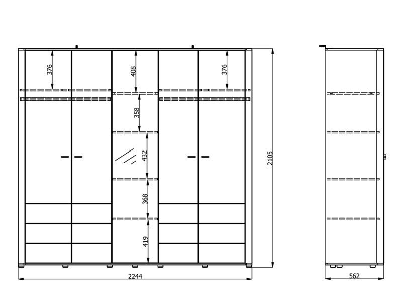 Dimenzije: Širina 224,5 cm x Dubina 56,0 cm x Visina 210,5 cm