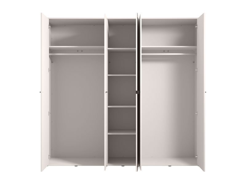 Ormar SERDICA 5K1O h211 u kombinaciji kašmir dekora i kašmir mat folije, predstavlja atraktivno i funkcionalno dizajnersko rešenje za opremanje savremenog ambijenta spavaće sobe. Ovaj petokrilni ormar , sa ogledalom u centralnom delu, doprinosi izraženoj estetici, eleganciji, ali i praktičnosti ambijenta spavaće sobe. Upotrebni prostor ovog modela čine garderobne šipke i pregrade. Deo je istoimenog sistema elemenata za opremanje spavaće sobe SERDICA, modernog dizajna, zaobljenih ivica na elementima i visokim nogarima koji doprinose atraktivnosti savremeno dizajniranog enterijera.