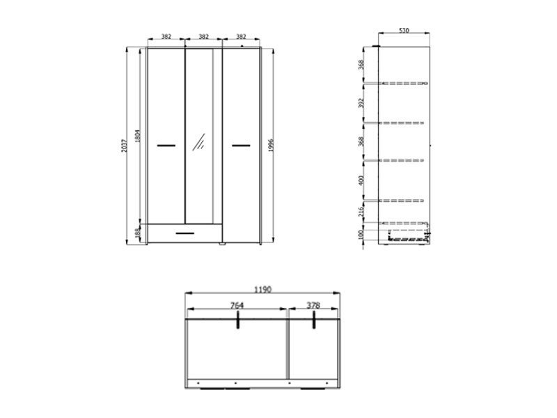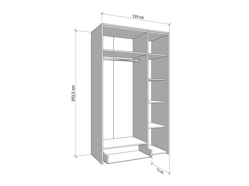 Dimenzije: Širina 119,0 cm x Dubina 53,0 cm x Visina 203,5 cm