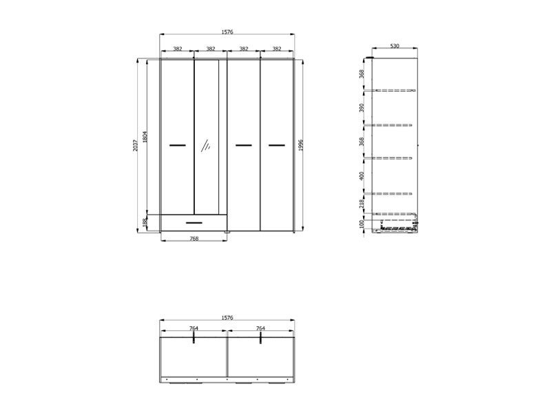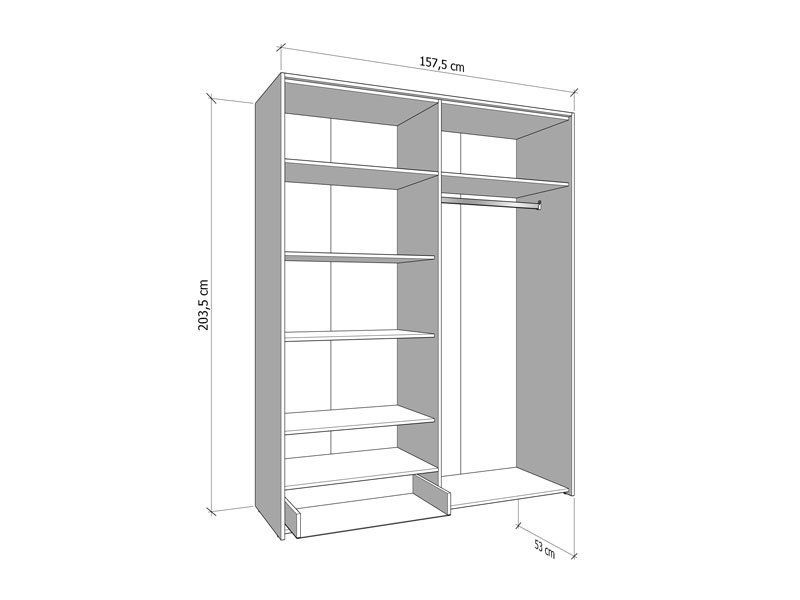 Dimenzije: Širina 157,5 cm x Dubina 53,0 cm x Visina 203,5 cm