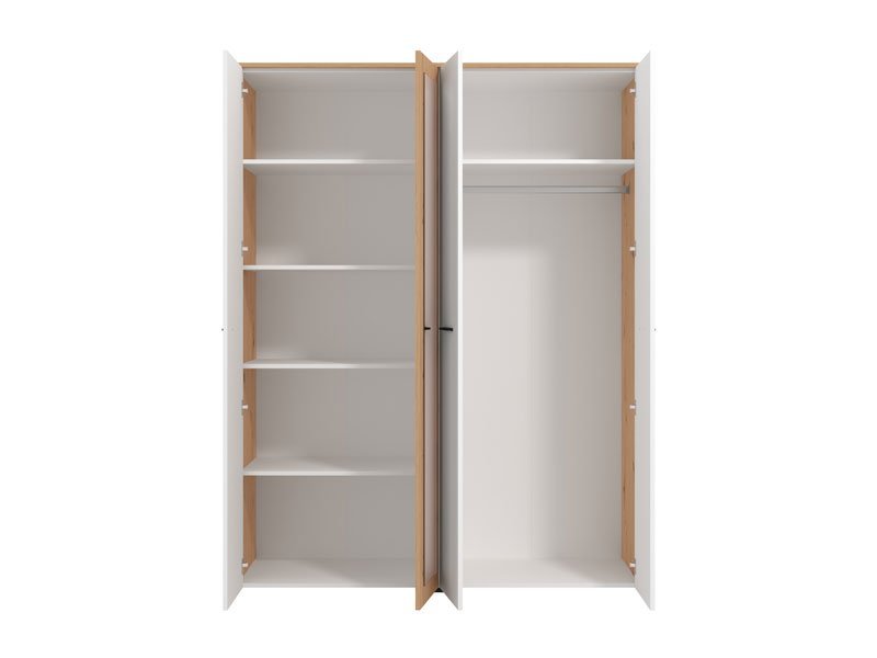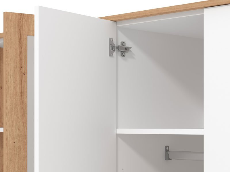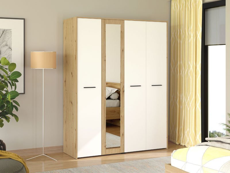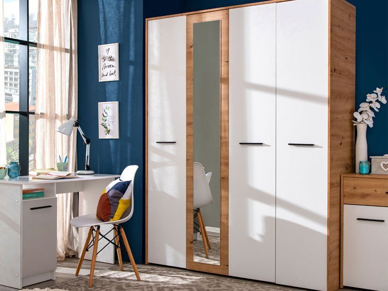Ormar VARADERO 4K1O, u dekoru artisan hrasta i opak bele, deo je istoimene kolekcije elemenata dečije sobe. Poseduje veoma funkcionalan upotrebni prostor sa sistemom polica, kao i delom sa garderobnom šipkom i policom iznad nje. Dodatni estetski benefit je ogledalo u središnjem delu.