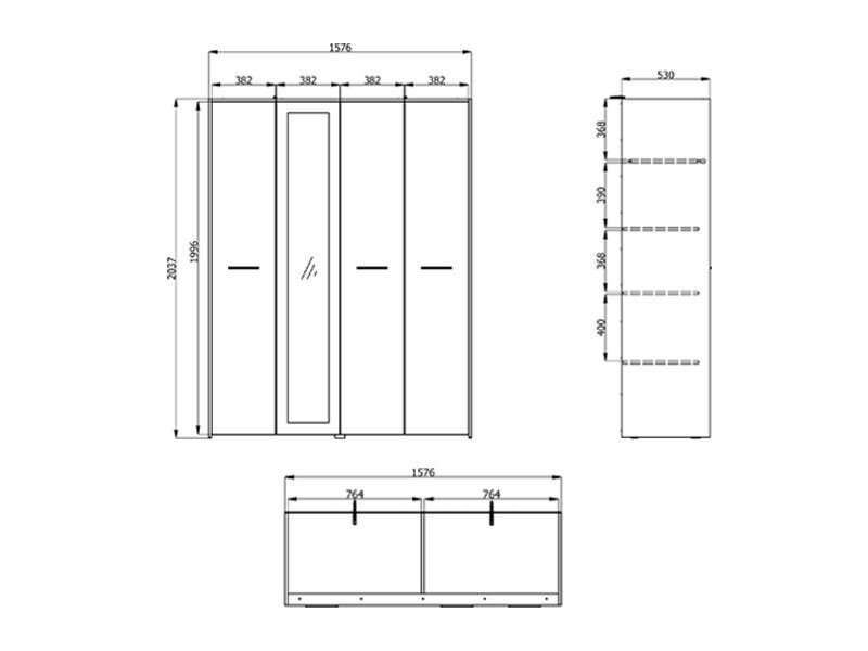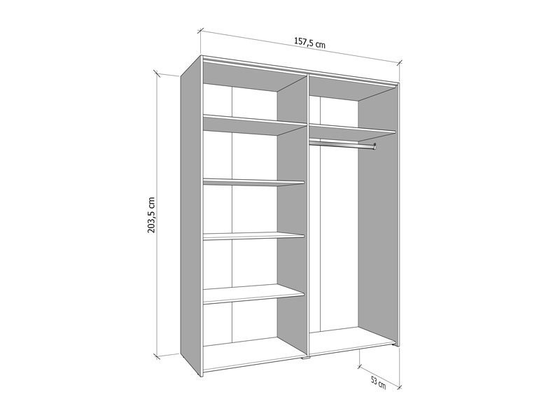 Dimenzije: Širina 157,5 cm x Dubina 53,0 cm x Visina 203,5 cm