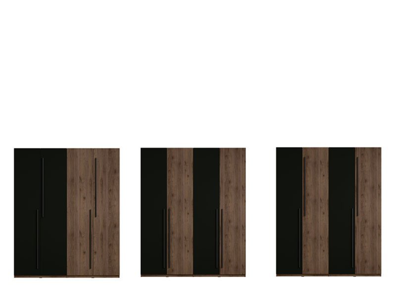 Tačan naziv dezena: korpus / front iverica tamni orah,crna. Ormar WENECJA je praktični model četvorokrilnog ormara, a upotrebni prostor čine dva dvokrilna dela sa po dve police i garderobnom šipkom. Specifičnost ovog modela ormara je mogućnost odabira rasporeda frontova pri montaži, kao i mogućnost postavljanja rukohvata na željenu visinu. Deo je ambijentalnog rešenja za uređenje spavaće sobe WENECJA.