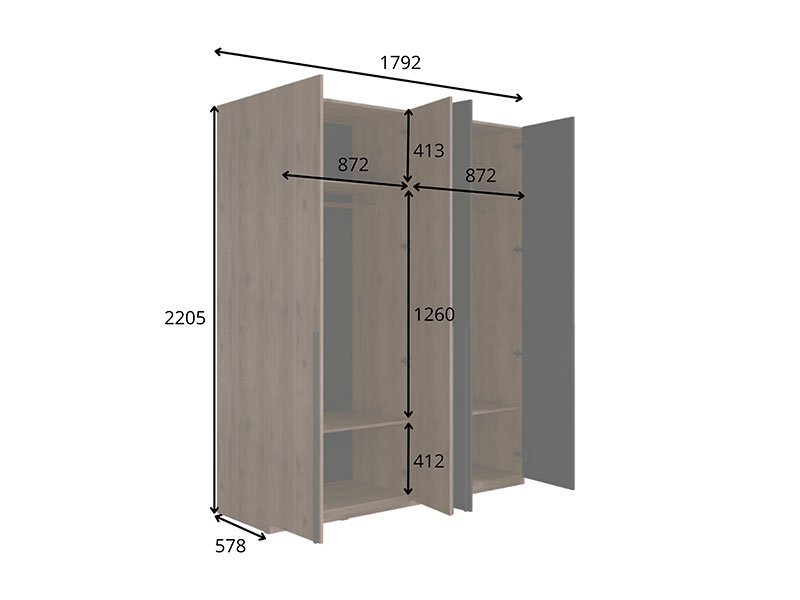Dimenzije: Širina 179,0 cm x Dubina 58,0 cm x Visina 220,5 cm