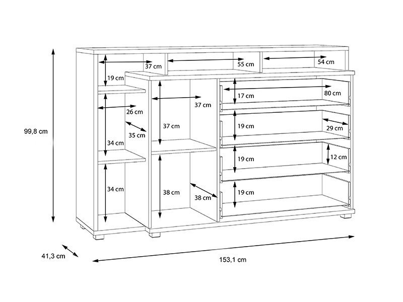 Dimenzije: Širina 153,0 cm x Dubina 41,5 cm x Visina 98,0 cm