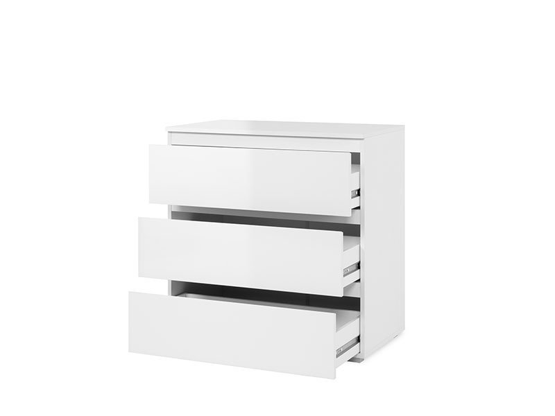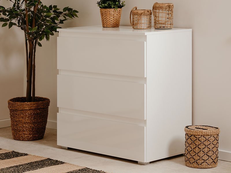 Tačan naziv dezena : konstrukcija/front iverica bela HG. Komdoa CAPETOWN 3K doprinosi funkcionalnosti i eleganciji čitavog ambijenta.Odlično raspoređen upotrebni prostor ove komode čine tri praktične fioke.