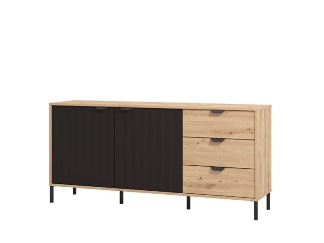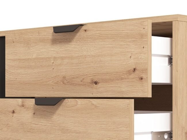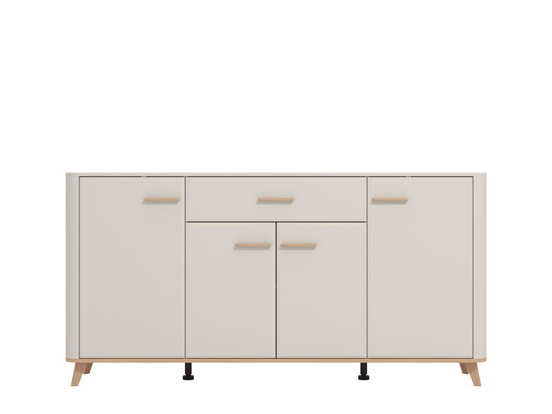 Komoda DARWEN 180 4K1F4V u kombinaciji kašmir dekora, dekora artisan hrasta i kašmir mat folije predstavlja atraktivno rešenje za sve ljubitelje modernog dizajna enterijera.  Idealan je izbor za uređenje dnevnog boravka. Upotrebni prostor čine četiri zatvorena pregradna dela i jedna prostrana fioka. Deo je sistema elemenata DARWEN za opremanje dnevne sobe koji ispunjava svakodnevne životne i ambijentalne potrebe.