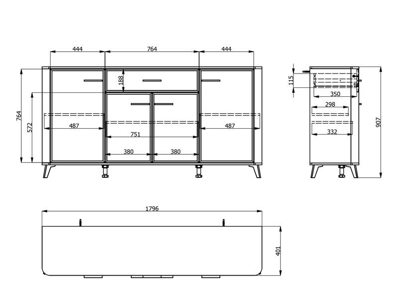 Dimenzije: Širina 179,5 cm x Dubina 40,0 cm x Visina 90,5 cm