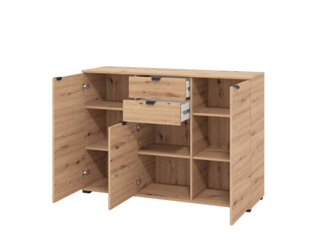 Komoda GARONA 3F u dekoru artisan hrasta doprinosi funkcionalnosti i eleganciji čitavog ambijenta.