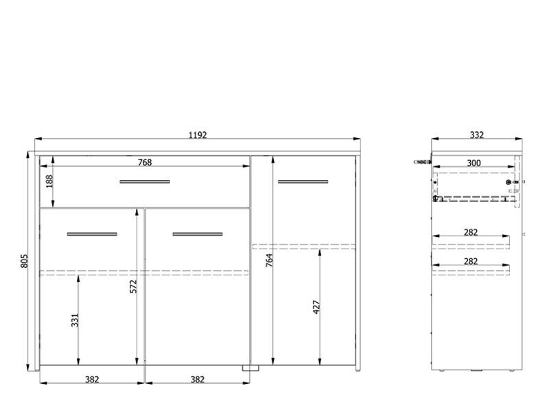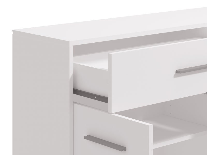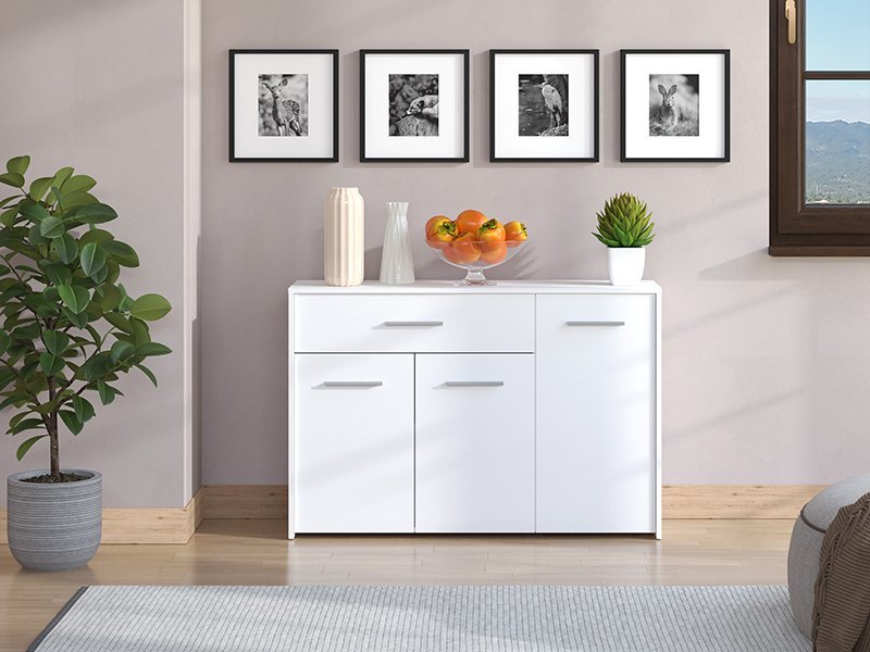 Komoda GARONA 3K1F u opak beloj boji doprinosi funkcionalnosti i eleganciji čitavog ambijenta. Odlično raspoređen upotrebni prostor ove komode čine tri zatvorena dela sa policom i praktična fioka.