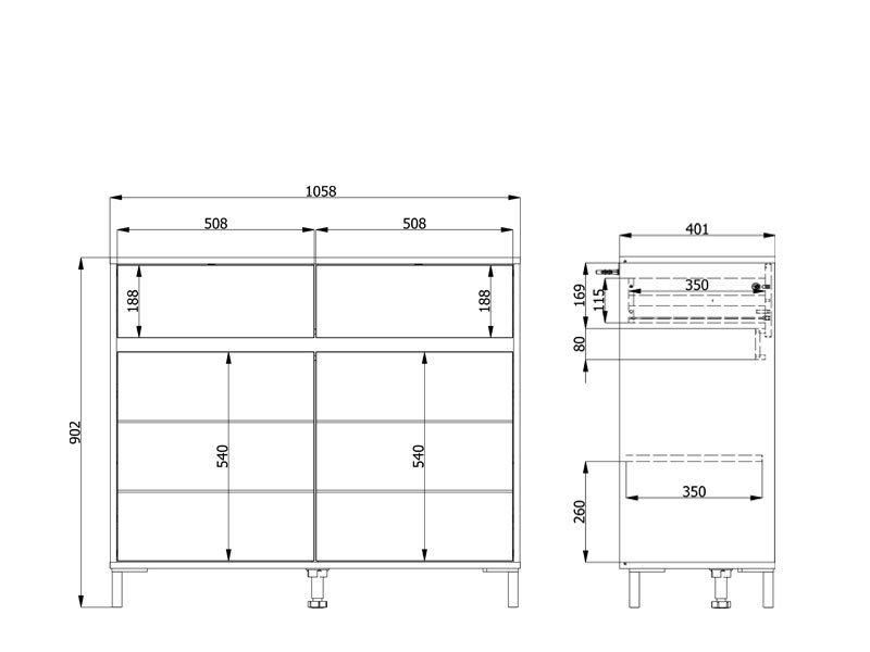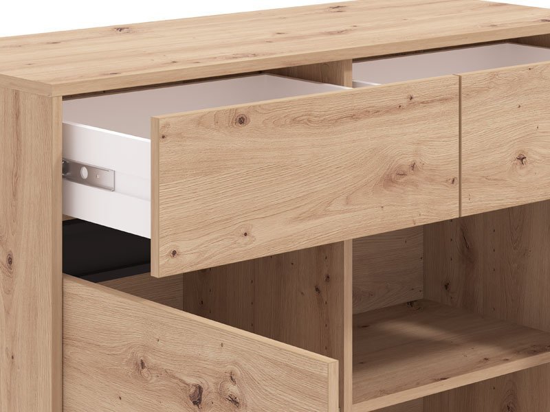 Odlično raspoređen upotrebni prostor ove komode čine dva zatvorena pregradna dela i dve praktične fioke.