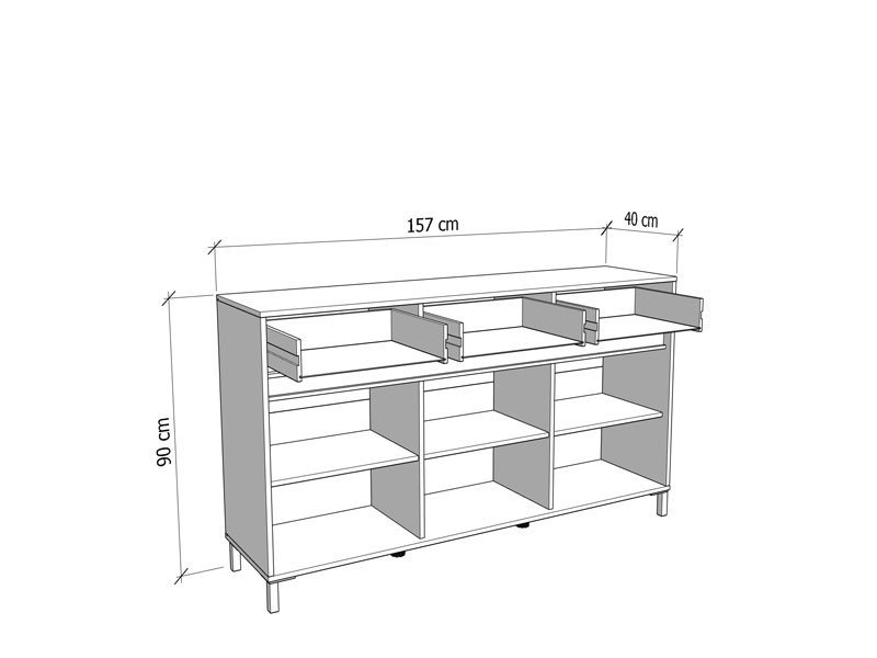 Odlično raspoređen upotrebni prostor ove komode čine tri zatvorena pregradna dela i tri praktične fioke.