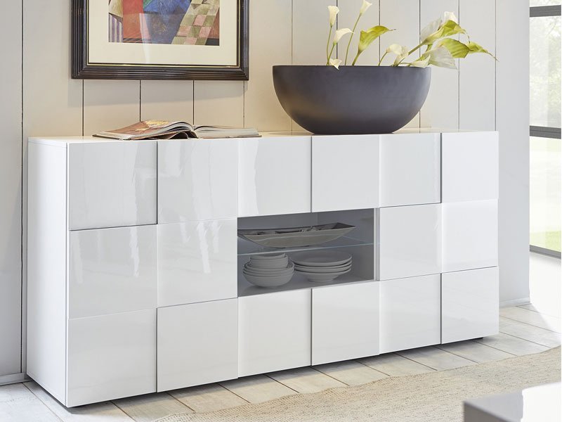 Tačan naziv dezena: korpus iverica bela sjaj, front iverica bela sjaj. Komoda MONA 2V4F idealna je kao dodatni komad nameštaja za odlaganje, kako u ambijentu dnevne sobe, tako i u ostalim ambijentima doma – predsoblju, trpezariji ili spavaćoj sobi. Odlično raspoređen upotrebni prostor ove komode čine dva zatvorena pregradna dela sa policama, jedan poluzastakljeni deo, kao i dve fioke.