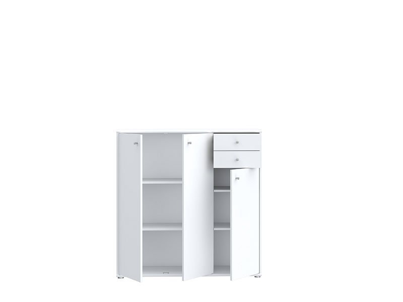 Trokrilna komoda TEMPRA 3V2F, u dekoru korpus/front iverica bela poseduje tri zatvorena krila i dve fioke. Zahvaljujući upotrebnom prostoru koji obezbeđuje svrstava se u elemente velike funkcionalnosti. Komoda TEMPRA 3V2F je pogodna za opremanje predsoblja, dnevne zone ili spavaće sobe.