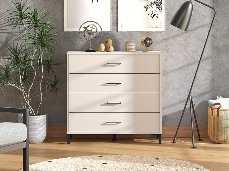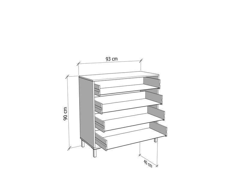 Komoda VIENNE 4F, u kašmir dekoru dizajnirana je tako da zahvaljujući upotrebnom prostoru koji obezbeđuju četiri prostrane fioke, spada u elemente sa velikom upotrebnom vrednošću. Komoda VIENNE 4F je pogodna za opremanje predsoblja, dnevne zone, dečije ili spavaće sobe.
