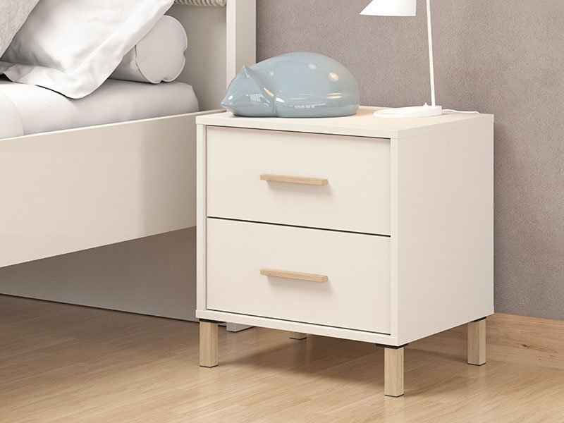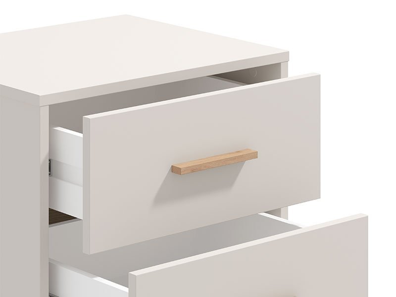 Noćni ormarić BELFORT NO2F u kombinaciji kašmir dekora i artisan hrast folije, doprinosi otmenosti i eleganciji čitavog ambijenta i neophodan je i veoma praktičan element u svakom ambijentu spavaće sobe. Odlično raspoređen upotrebni prostor noćnog ormarića čine dve praktične fioke. Deo je istoimenog sistema elemenata za opremanje spavaće sobe BELFORT, moderne dizajnerske forme.