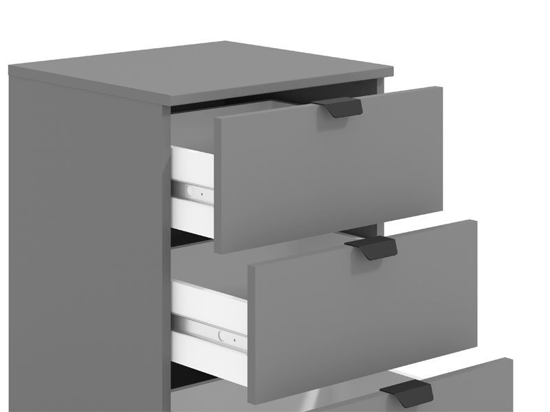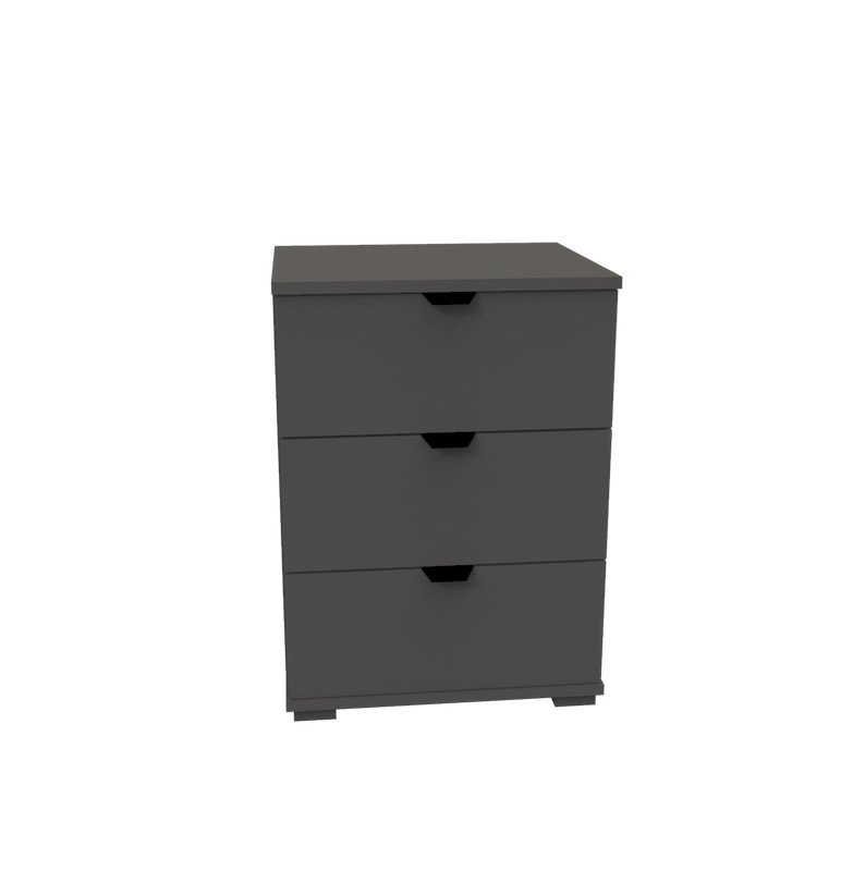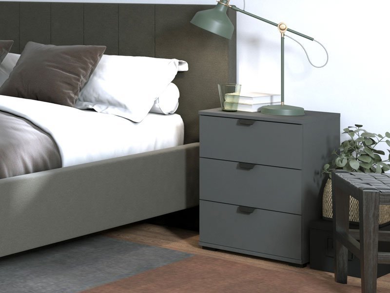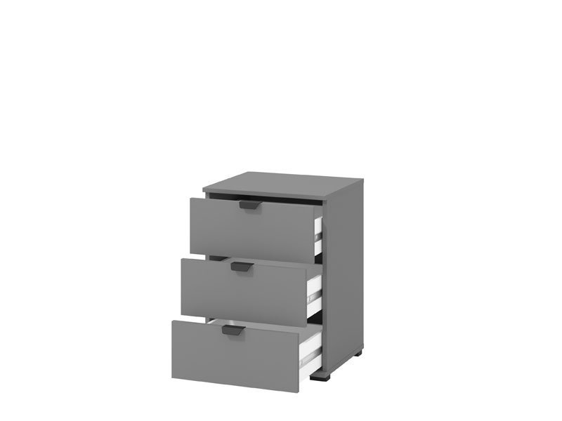 Noćni ormarić DUERO 3F, u sivom dekoru, je inovativni model noćnog ormarića, praktičnog dizajna, sa tri vertikalno smeštene fioke. Funkcionalan je deo spavaće sobe i doprinosi estetici ambijenta.