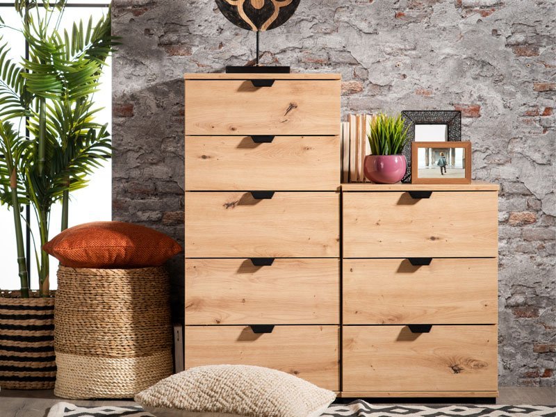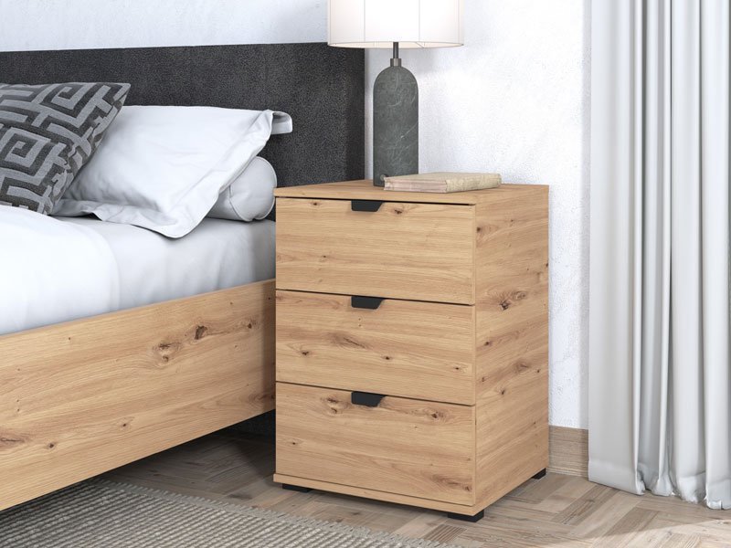 Noćni ormarić DUERO 3F, u dekoru artisan hrasta, je inovativni model noćnog ormarića, praktičnog dizajna, sa tri vertikalno smeštene fioke. Funkcionalan je deo spavaće sobe i doprinosi estetici ambijenta.