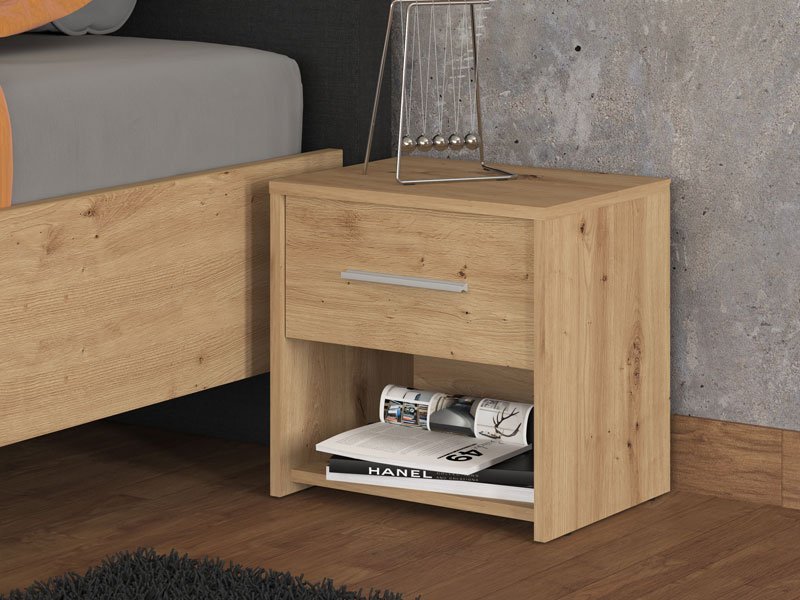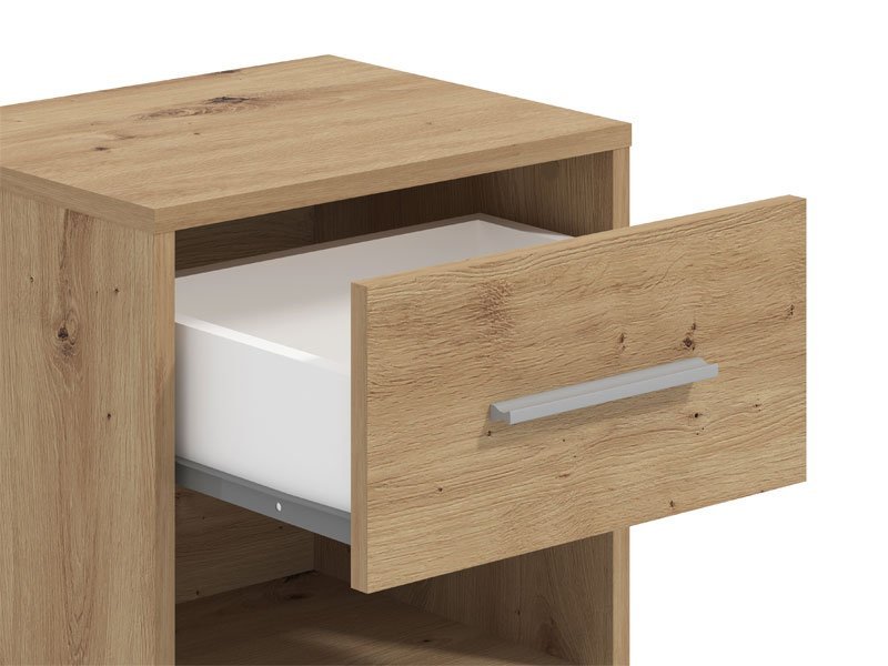 Noćni ormarić GARONA 2NO1F u dekoru artisan hrasta doprinosi funkcionalnosti i eleganciji čitavog ambijenta.