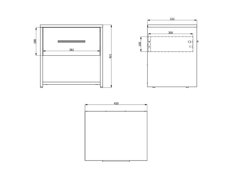 Odlično raspoređen upotrebni prostor noćnog ormarića čine jedna praktična fioka i otvorena polica.
