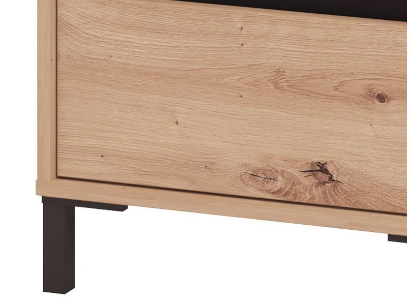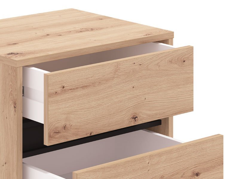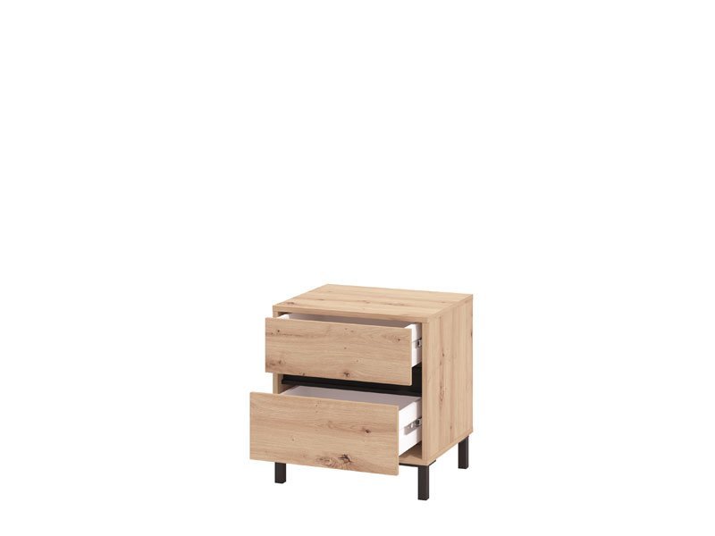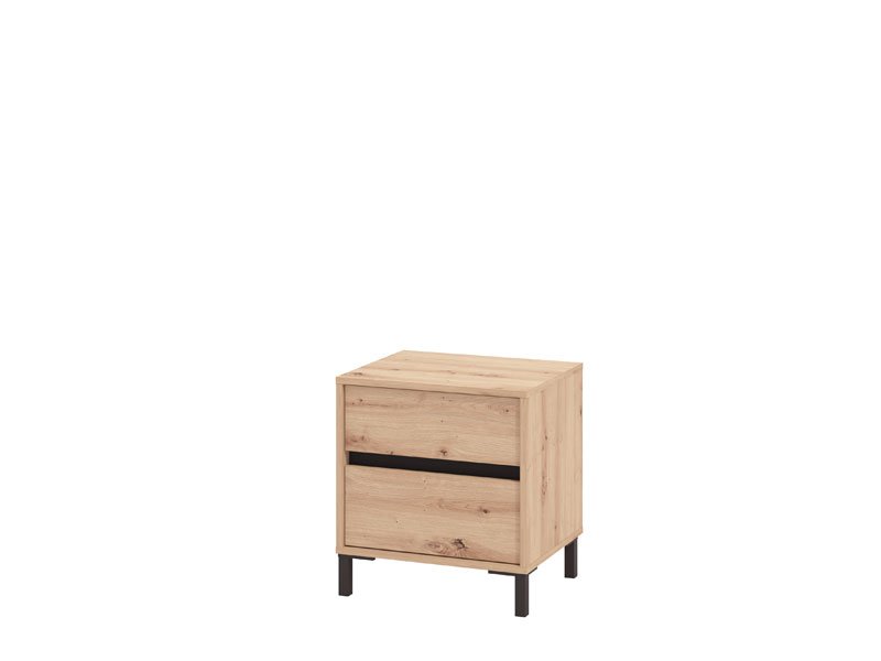 Noćni ormarić MARRON NO2F u kombinaciji artisan hrast dekora i crne mat folije, moderno je dizajniran i autentičan komad nameštaja koji je neophodan i veoma praktičan element u svakom ambijentu spavaće sobe. Upotrebni prostor noćnog ormarića čine dve praktične fioke.