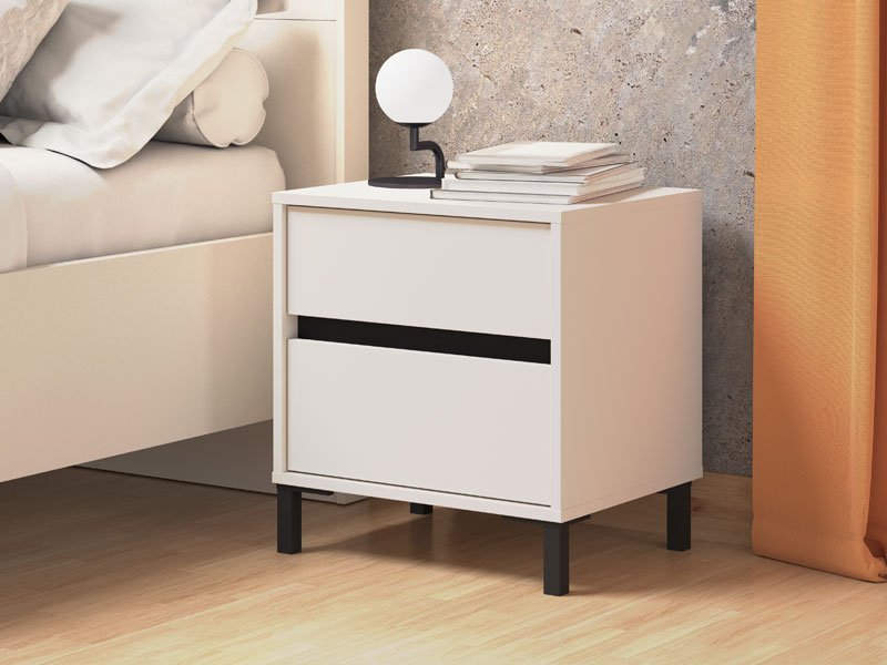 Noćni ormarić MARRON NO2F u kombinaciji kašmir dekora i crne mat folije, moderno je dizajniran i autentičan komad nameštaja koji je neophodan i veoma praktičan element u svakom ambijentu spavaće sobe. Upotrebni prostor noćnog ormarića čine dve praktične fioke.