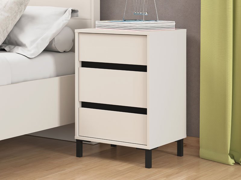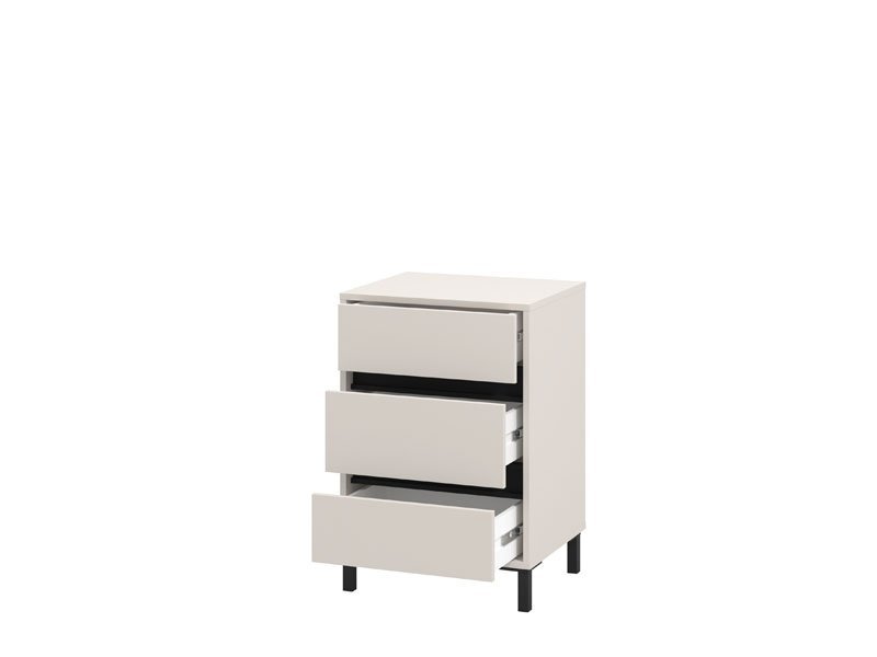 Noćni ormarić MARRON NO3F u kombinaciji kašmir dekora i crne mat folije, moderno je dizajniran i autentičan komad nameštaja koji je neophodan i veoma praktičan element u svakom ambijentu spavaće sobe. Upotrebni prostor noćnog ormarića čine tri praktične fioke.