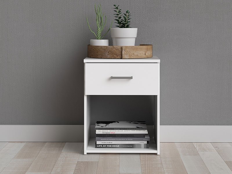 Odlično raspoređen upotrebni prostor noćnog ormarića čine jedna praktična fioka i otvorena polica.